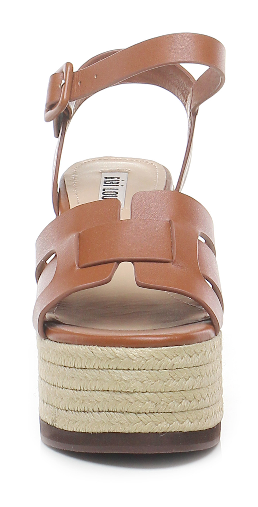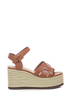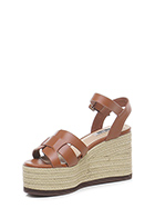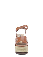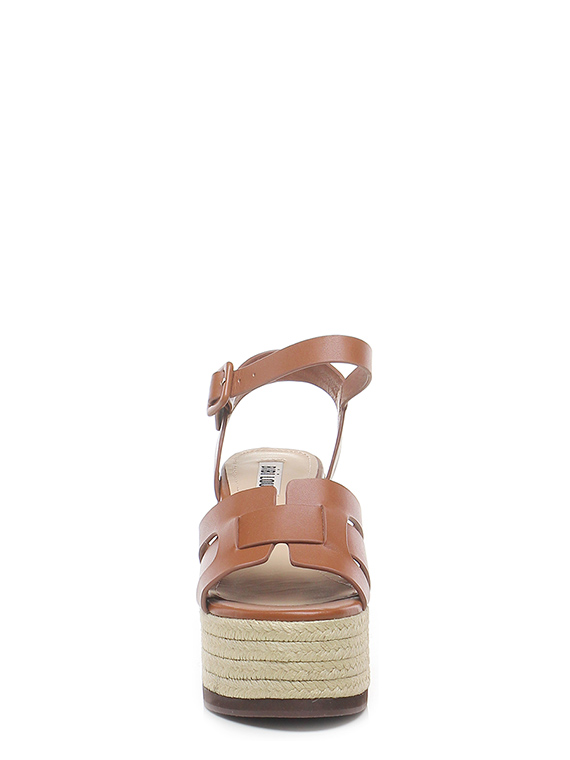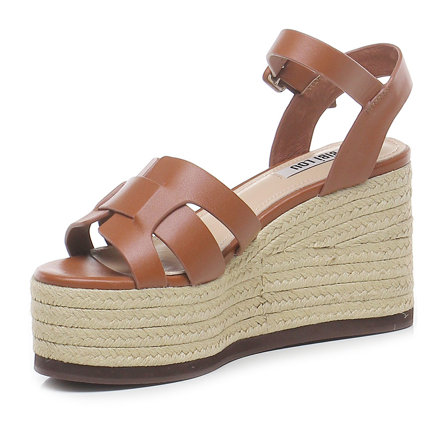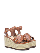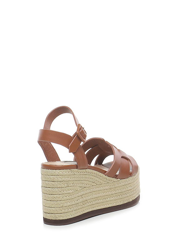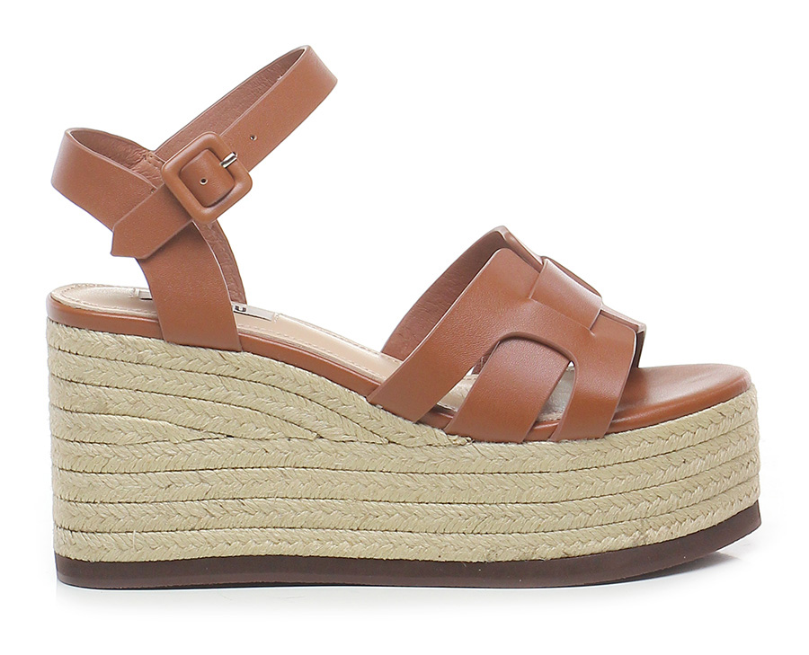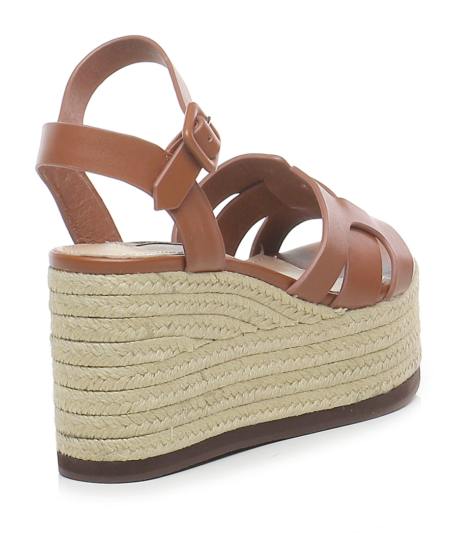 Leather wedge with ankle strap, rubber sole. Heel 95, platform 55 with ledge 40. Wedge covered in rope.