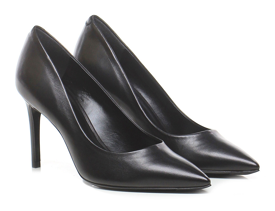 Decolleté in pelle con suola in cuoio e gomma. Tacco 85.