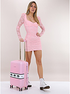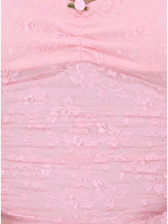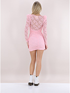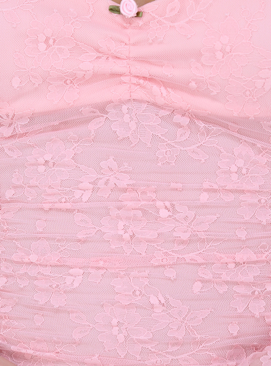 Abito in pizzo Aniye By foderato. Maniche lunghe a sbuffo e scollo a cuore. Arricciatura fronte e retro e zip di chiusura laterale. La modella è alta 1.75 ed indossa la taglia 40.
