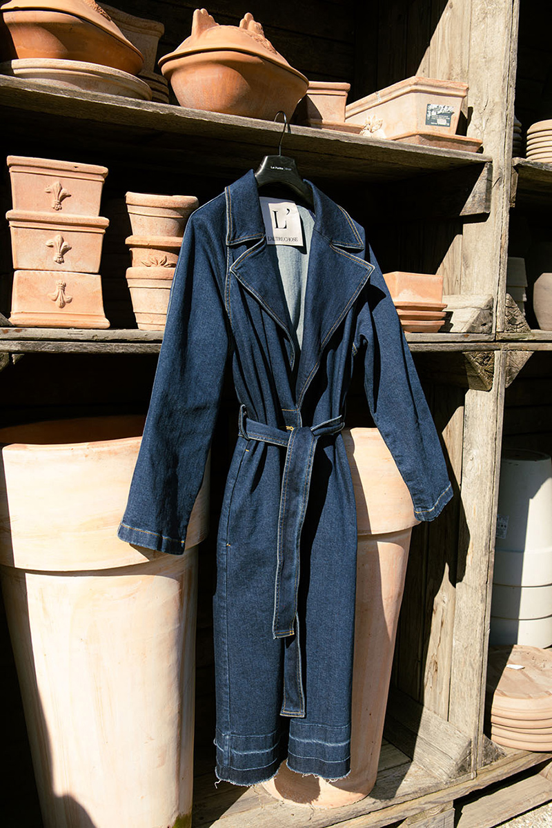 Trench in denim di cotone sfoderato a maniche lunghe e collo a reverse. Tasche a sacchetto e fondo sfrangiato con effetto consumato. Cintura inclusa. La modella è alta 1,68 cm ed indossa la taglia 40.