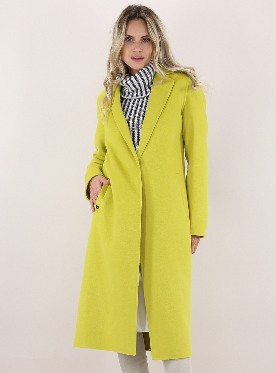 Cappotto Manila Grace in misto lana sfoderato. Maniche lunghe e collo a rever. Tasche a filetto e spacchi sul retro. Automatici di chiusura frontale. La modella è alta 1.68 ed indossa la taglia 40.