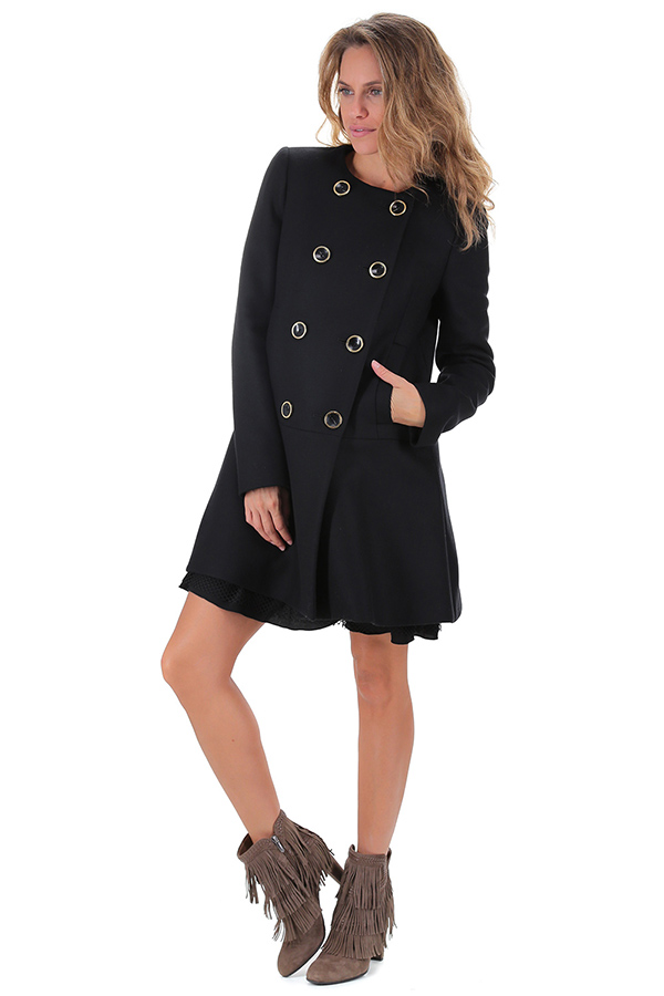 Cappotto foderato in lana con tasche laterali e chiusura a doppio petto con bottoni bordati gold.