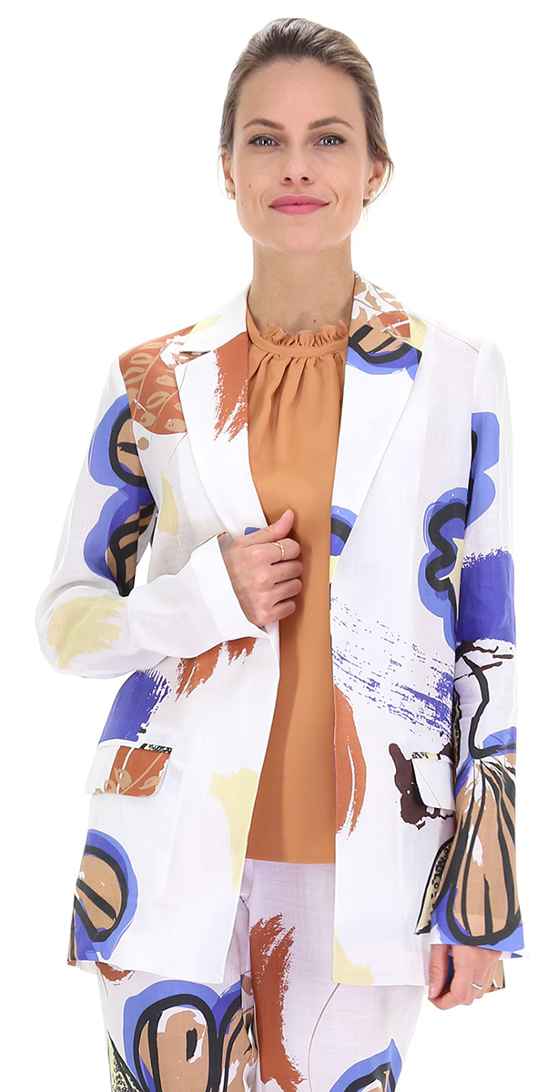 Blazer in ramier sfoderato con tasche a pattina frontali e spacco sul retro. La modella è alta 1.68 ed indossa la taglia 40.