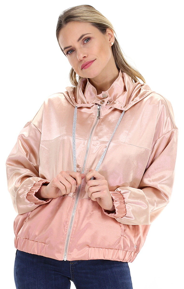 Giubbino foderato a maniche lunghe e collo a fascetta con cappuccio. Tasche a filetto e zip di chiusura frontale. Fantasia degradè. La modella è alta 1,68 e indossa la taglia XS.