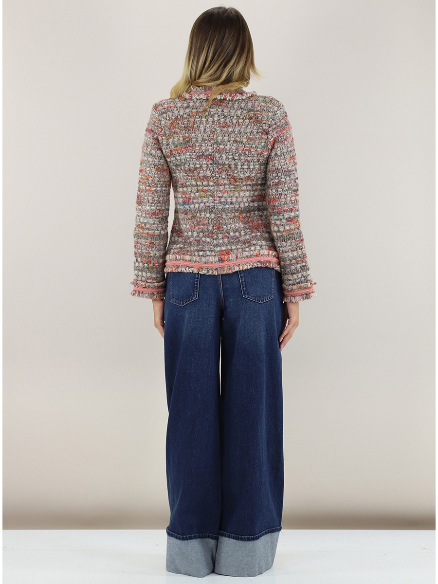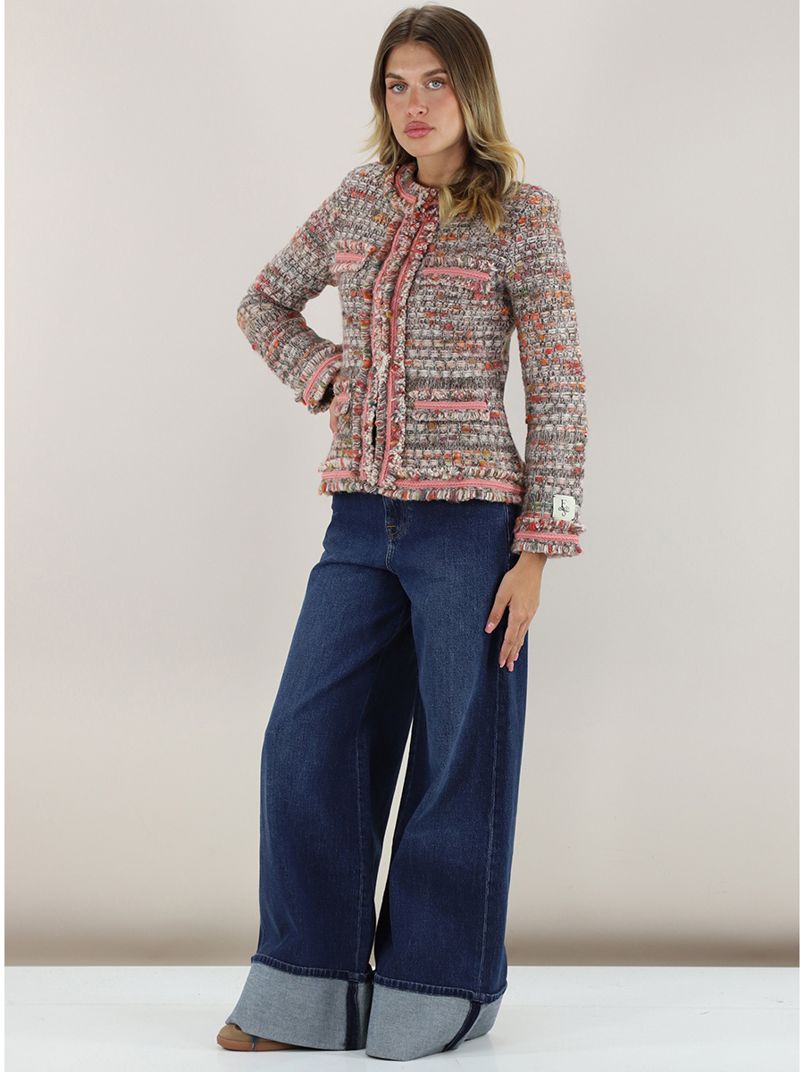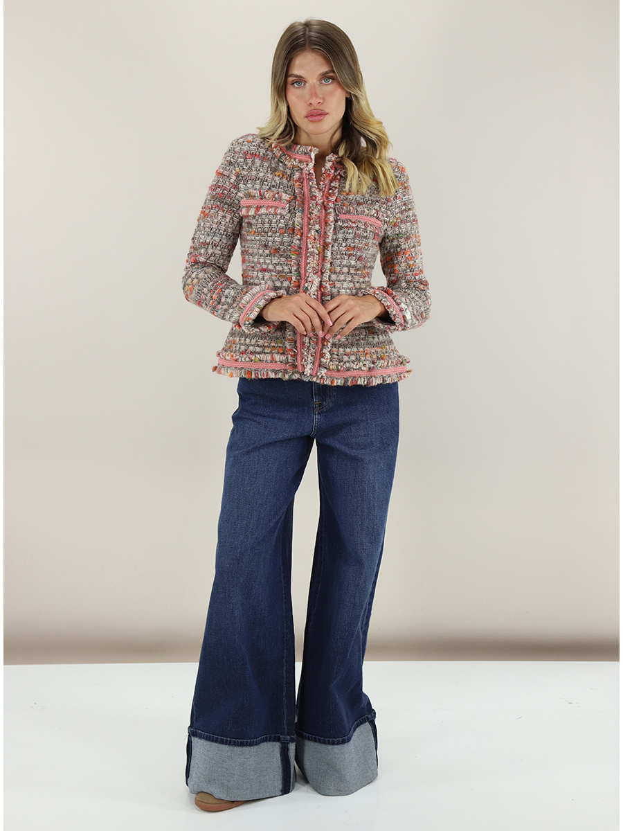 • Applicazioni: Profilo con frange, Logo, Fantasia, Applicazioni a contrasto, Tasche, Fondo sfrangiato