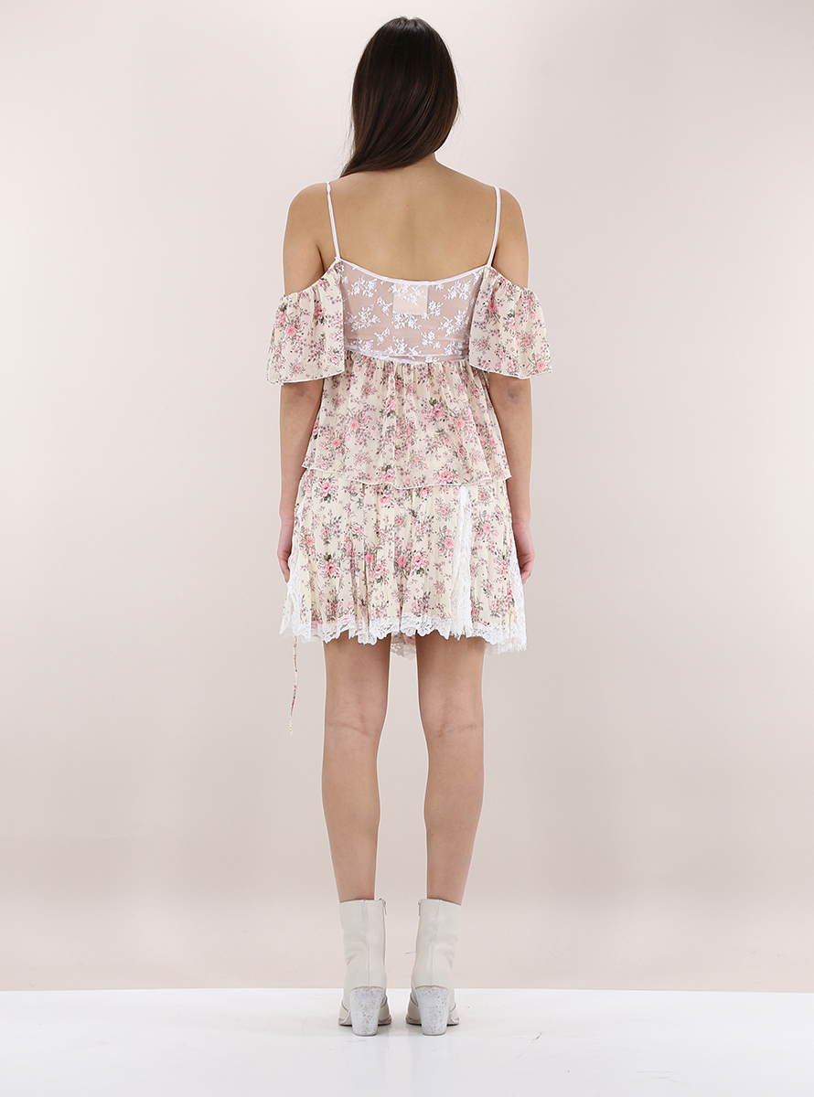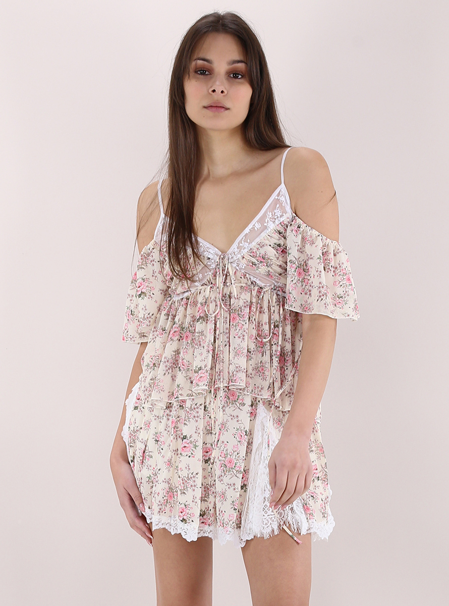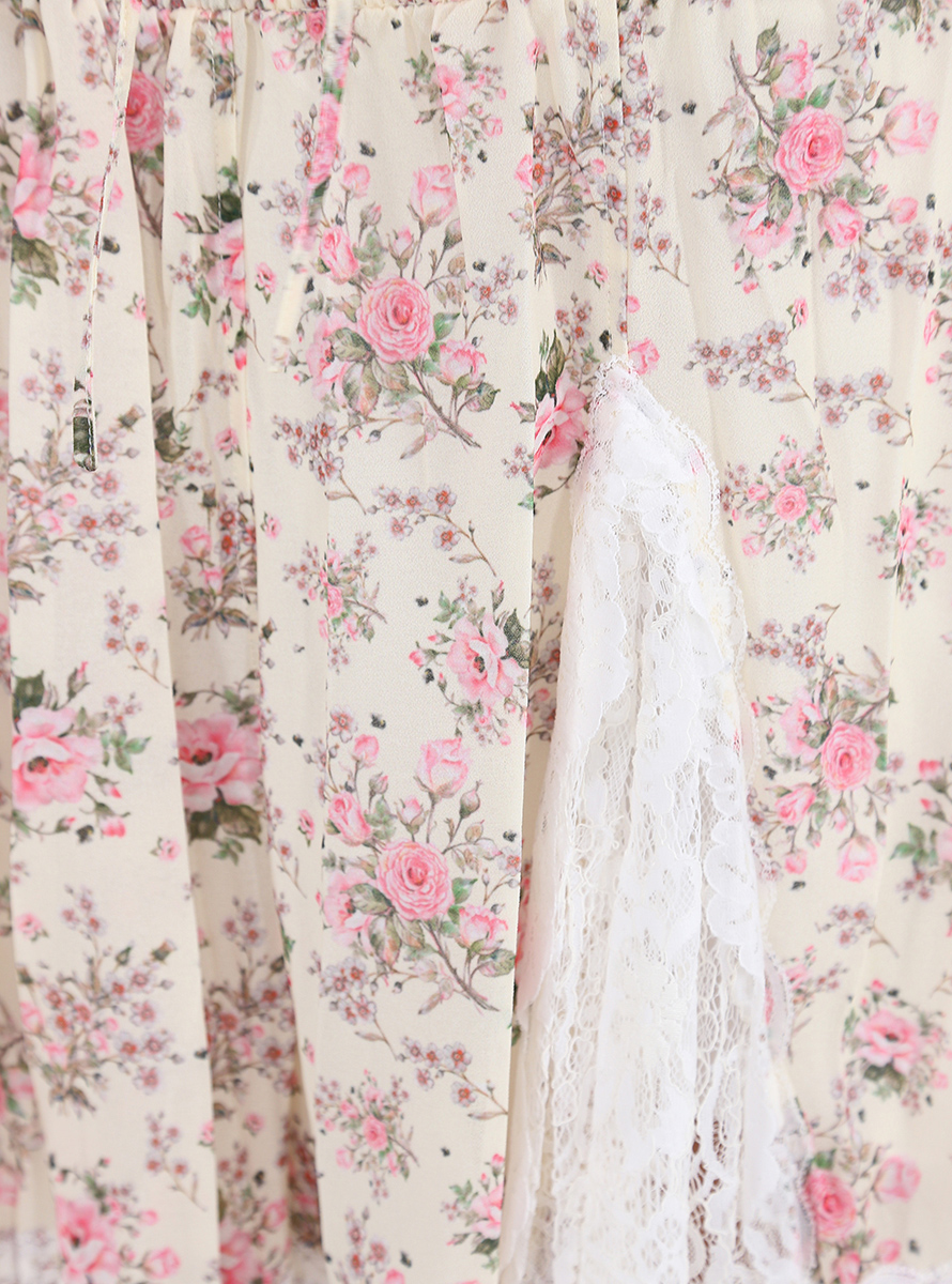 Gonna Aniye By foderata con elastici in vita. Gonna svasata con inserti in pizzo e sul fondo. Fantasia floreale. La modella è alta 1,68 ed indossa la taglia 40.