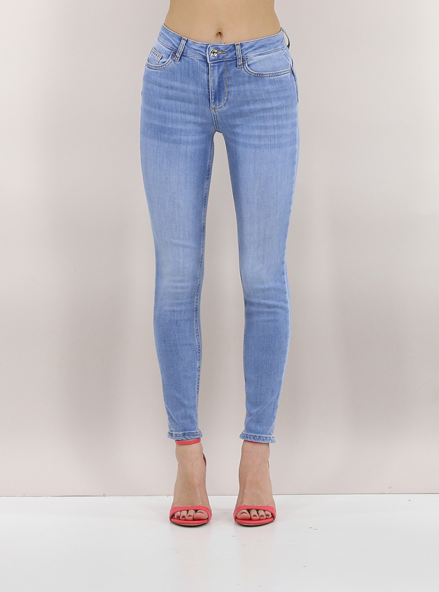 Jeans Liu.Jo in denim di cotone stretch ad effetto bottom up. Vestibilità skinny e vita regolare. La modella è alta 1.70 ed indossa la taglia 25.