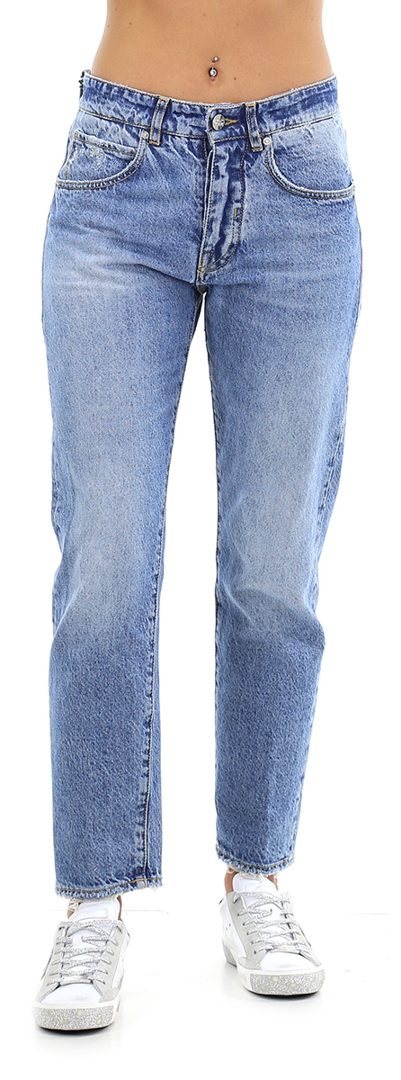 Jeans in cotone e canapa a vita media e vestibilità morbida. Bottoni di chiusura frontali. Effetto vintage slavato. La modella è alta 1,68 e indossa la taglia 25.