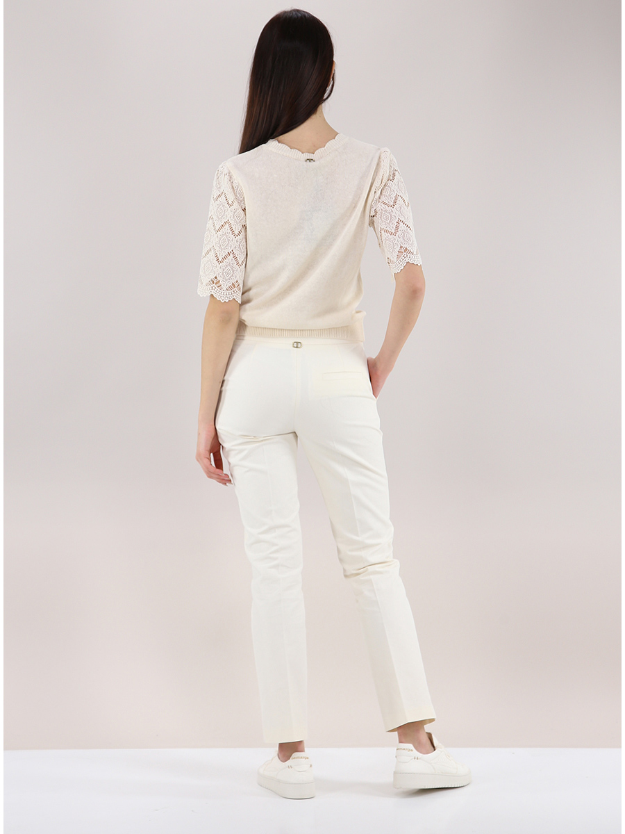 Le caratteristiche del marchio Twin Set sono, da sempre, romanticismo e iperfemminilità abbinate a una ricerca continua di creatività e attenzione al dettaglio. L’artigianalità, i materiali naturali selezionati, le preziose lavorazioni a mano e le innovative tecniche di stampa e tintura fanno delle collezioni Twin Set simbolo di novità e alta qualità. Volendo proporre una moda capace di dare espressione all’individualità della donna, Twin Set crea vere e proprie opere d’arte dallo stile accattivante e dall’eleganza atemporale e contemporanea per una donna sempre pronta a giocare con la moda.