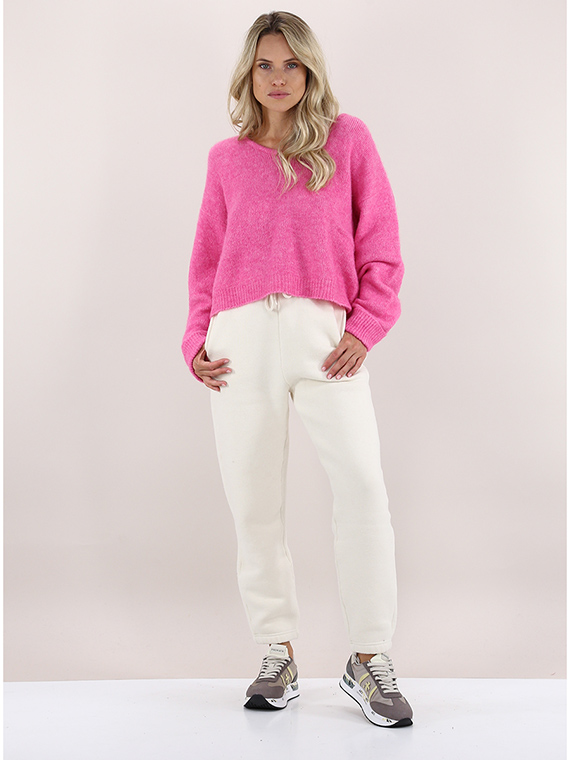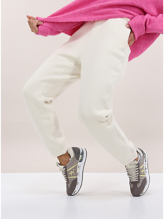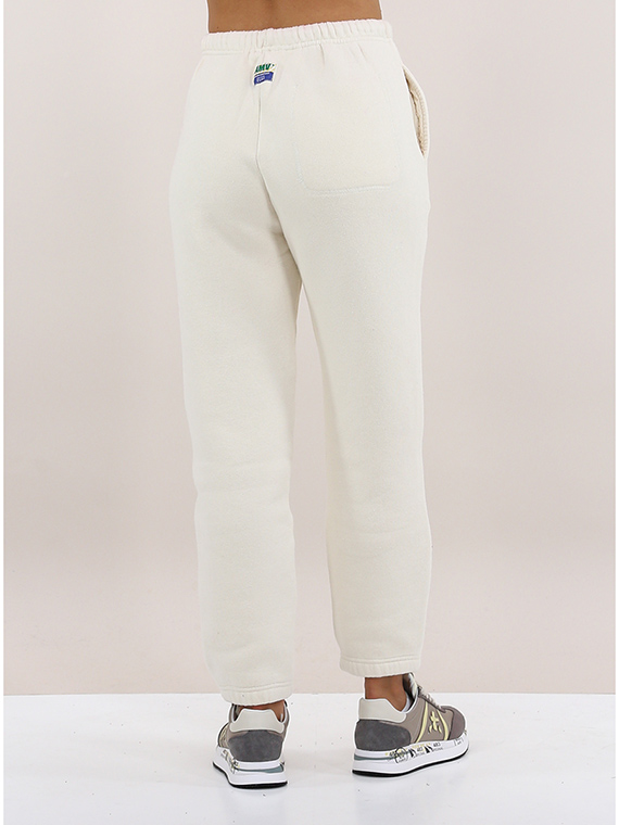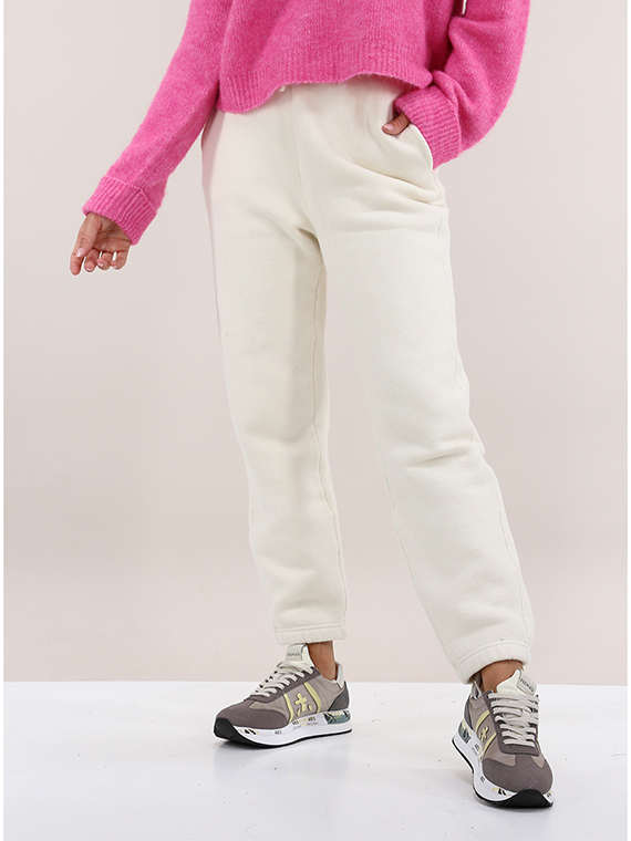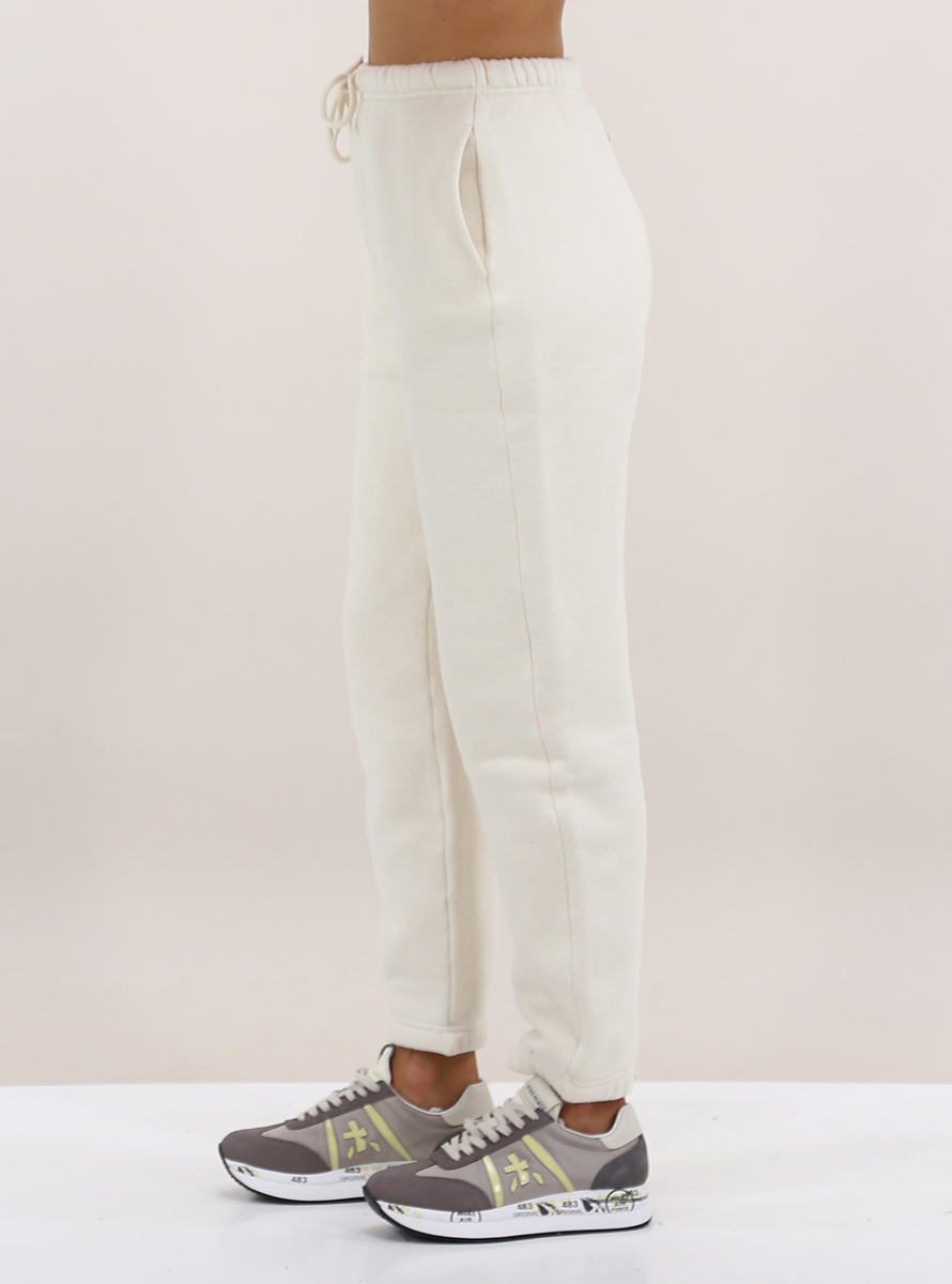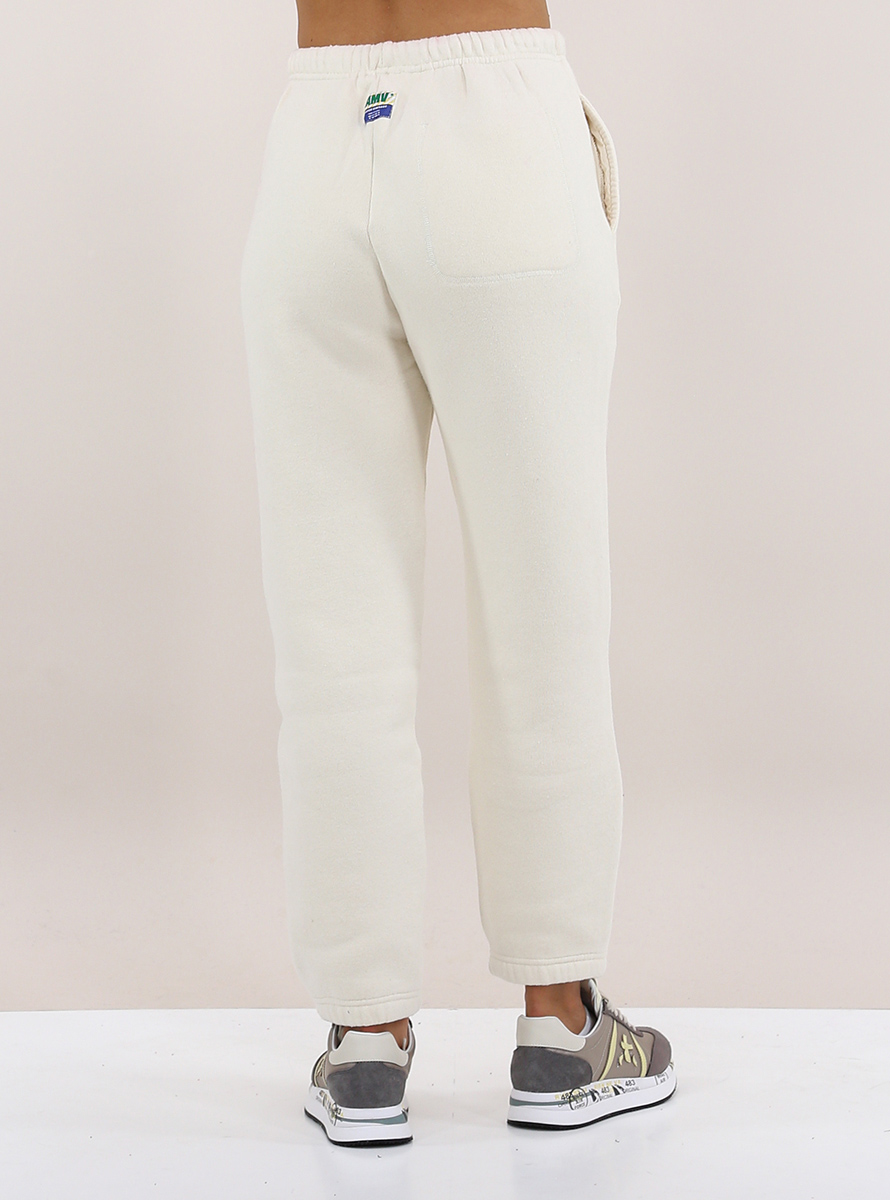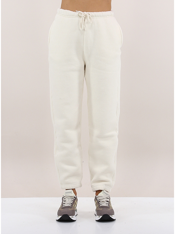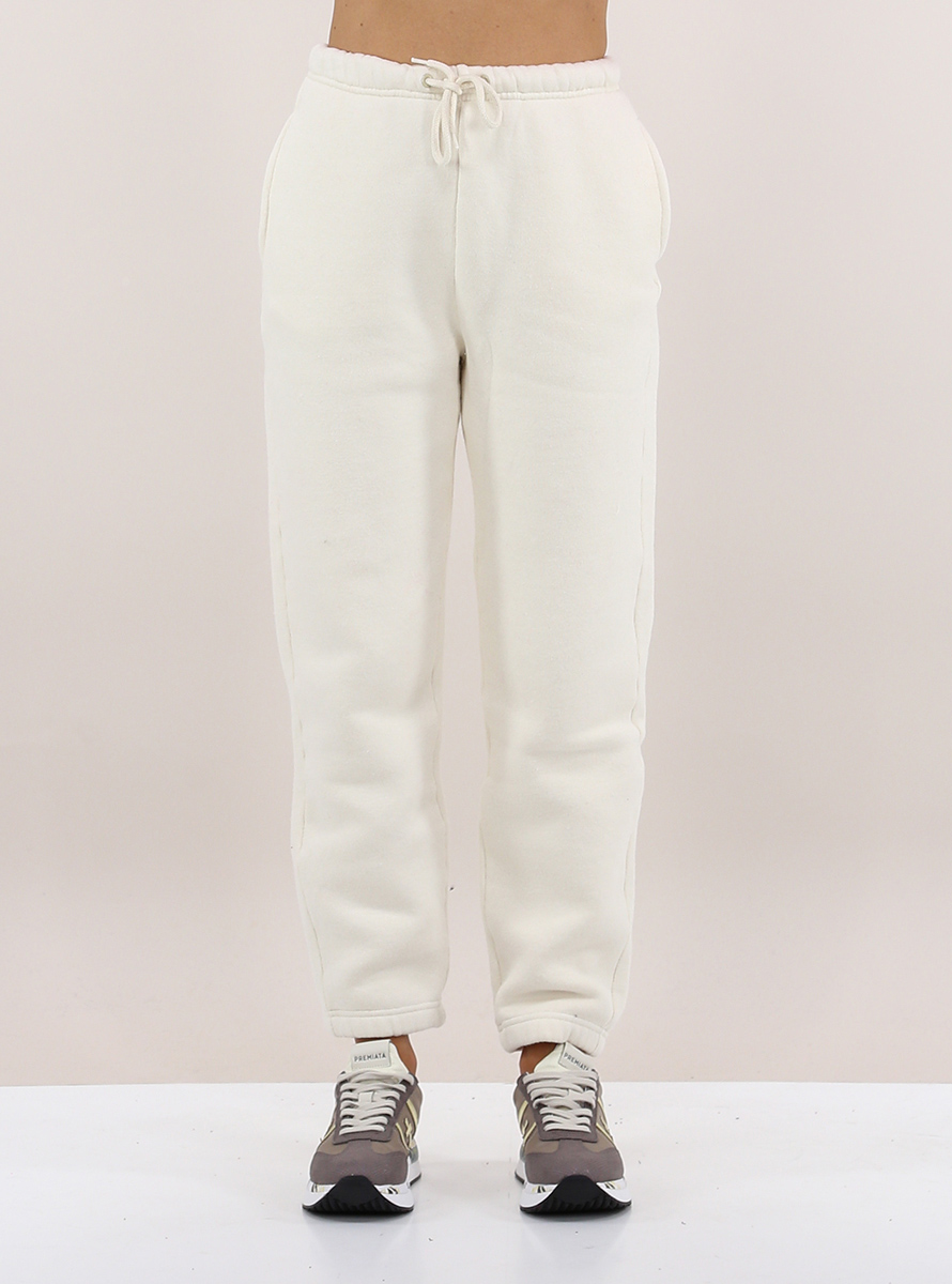 Pantalone jogger American Vintage in felpa di misto cotone stretch ad effetto vintage. Elastico in vita con coulisse e bordi a polsino. Tasche a sacchetto laterali e a toppa interna sul retro. La modella è alta 1,68 e indossa la taglia S.