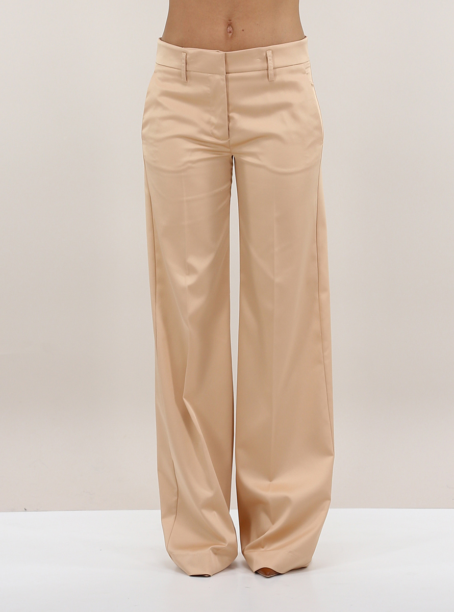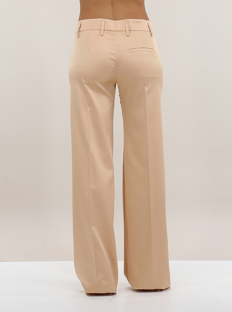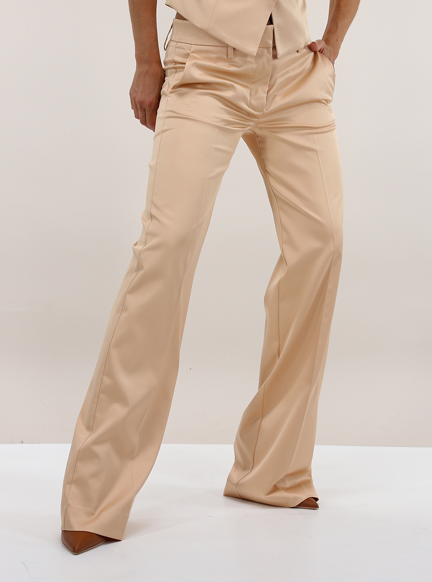 Pantalone palazzo Aniye By in raso di misto viscosa stretch. Vita bassa con tasche all'americana e a filetto sul retro. La modella è alta 1.68 ed indossa la taglia 40.