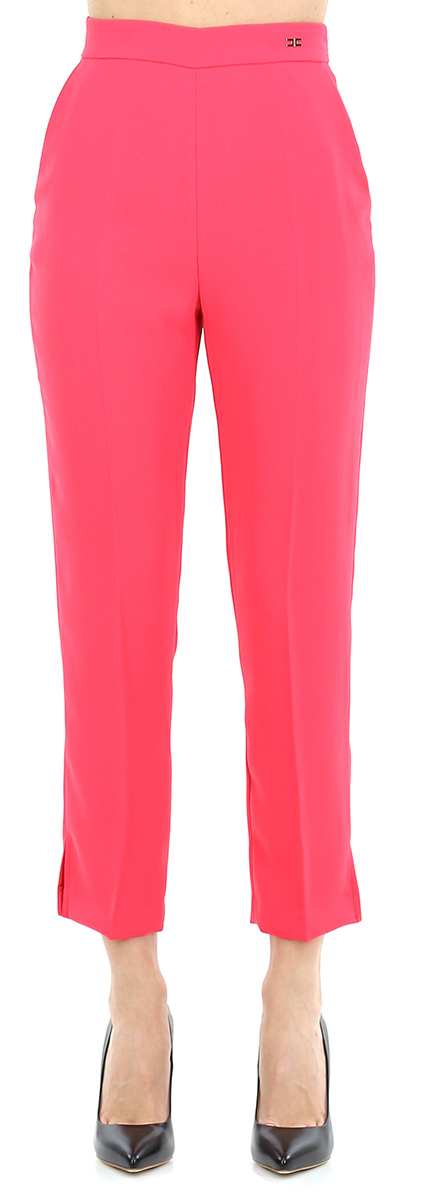 Pantalone a sigaretta a vita alta. Tasche all'americana e zip di chiusura sui fianchi. Spacchi sul fondo. La modella è alta 1.68 ed indossa la taglia 38.