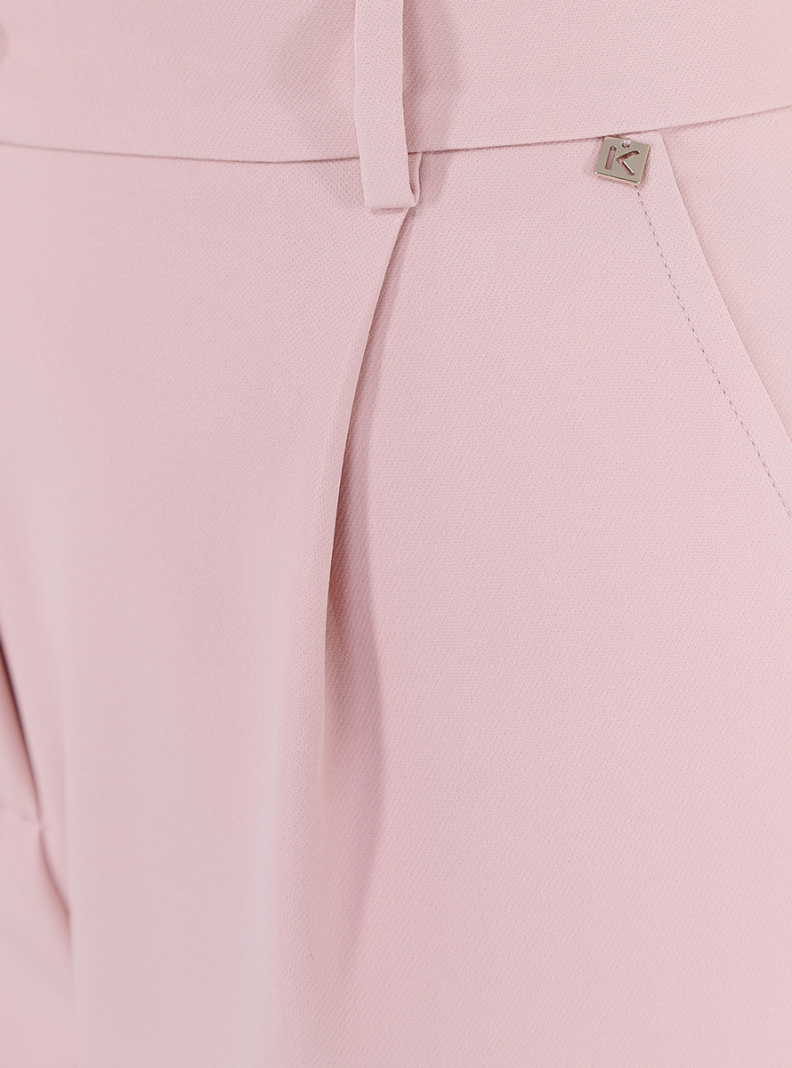 Shorts Kocca in gabardine stretch. Vita alta con tasche all'americana e a filetto sul retro. Pinces frontali. La modella è alta 1.75 ed indossa la taglia 40.
