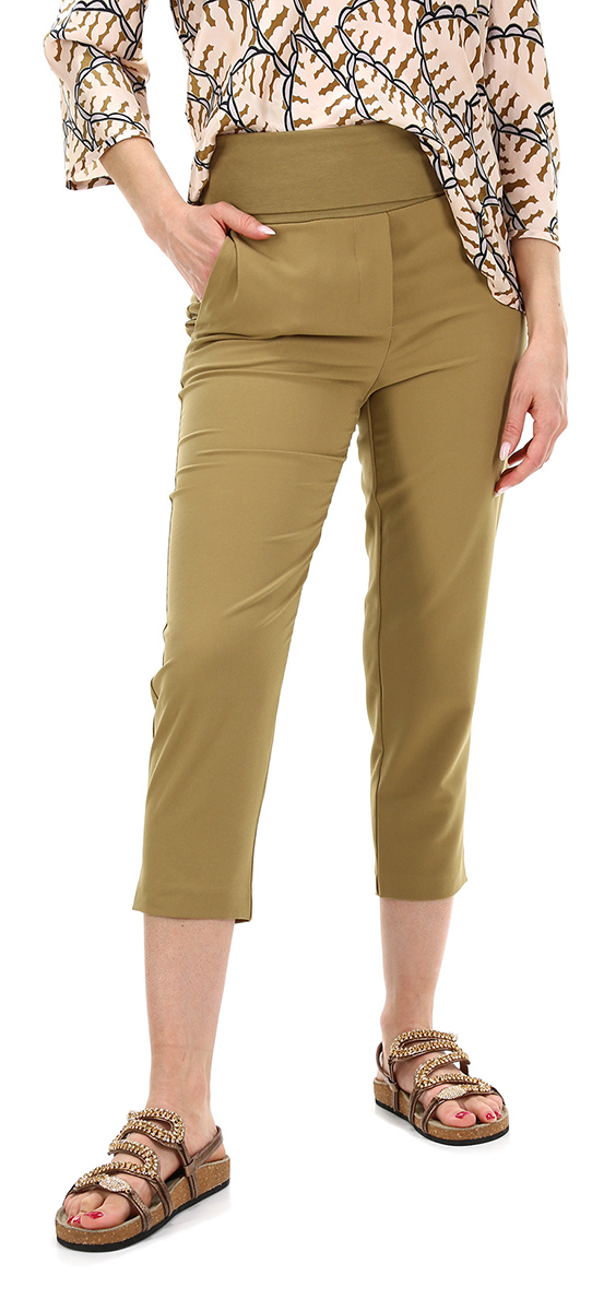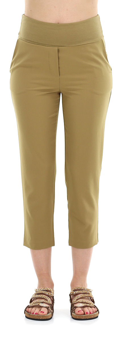 Pantalone Manila Grace in misto cotone stretch. Tasche all'americana e fascia elastica in vita. La modella è alta 1.68 ed indossa la taglia 40.