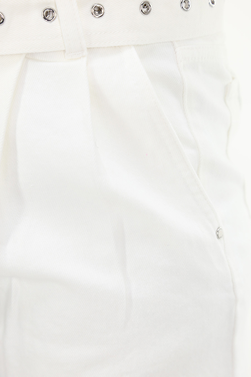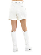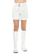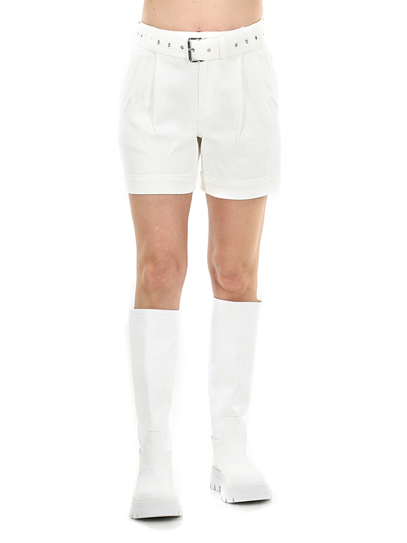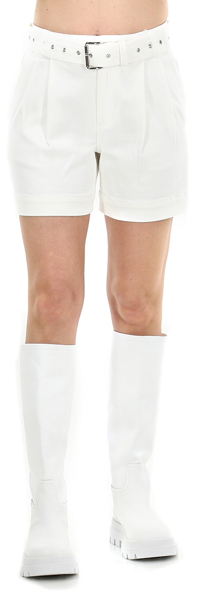 Short Michael Kors in denim di cotone stretch con tasche all'americana e a toppa sul retro. Pences frontali e cintura in tessuto inclusa. La modella è alta 1.68 ed indossa la taglia S.
