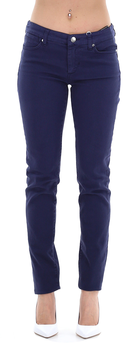 Pantalone a cinque tasche in cotone stretch. Vestibilità skinny e vita media. La modella è alta 1.68 ed indossa la taglia 26.