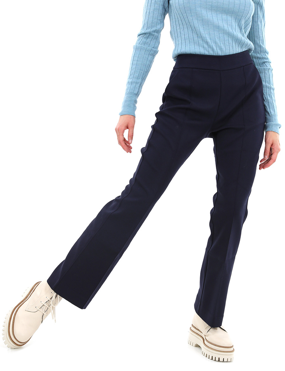 Pantalone a trombetta in misto viscosa ed elastane. Tasche all'americana e zip di chiusura sul retro. La modella è alta 1,68 cm ed indossa la taglia S.