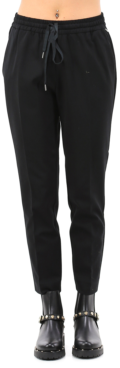 Pantalone jogging in viscosa elasticizzata con vestibilità slim. Coulisse in vita e tasche fronte e retro. La modella è alta 1.68 ed indossa la taglia 40.