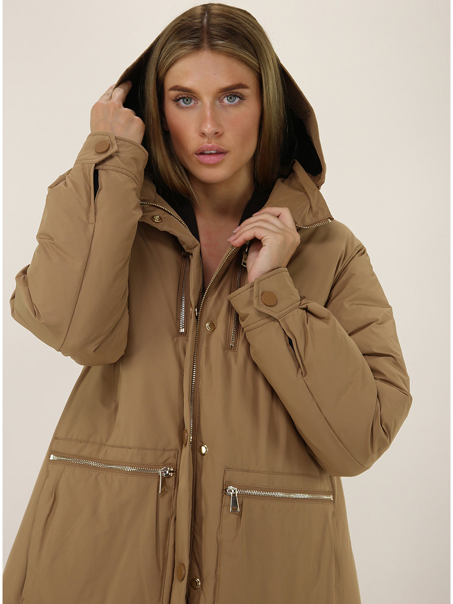 • Applicazioni: Spacchi sul fondo, Logo, Applicazioni a contrasto, Dettagli gold, Tasche