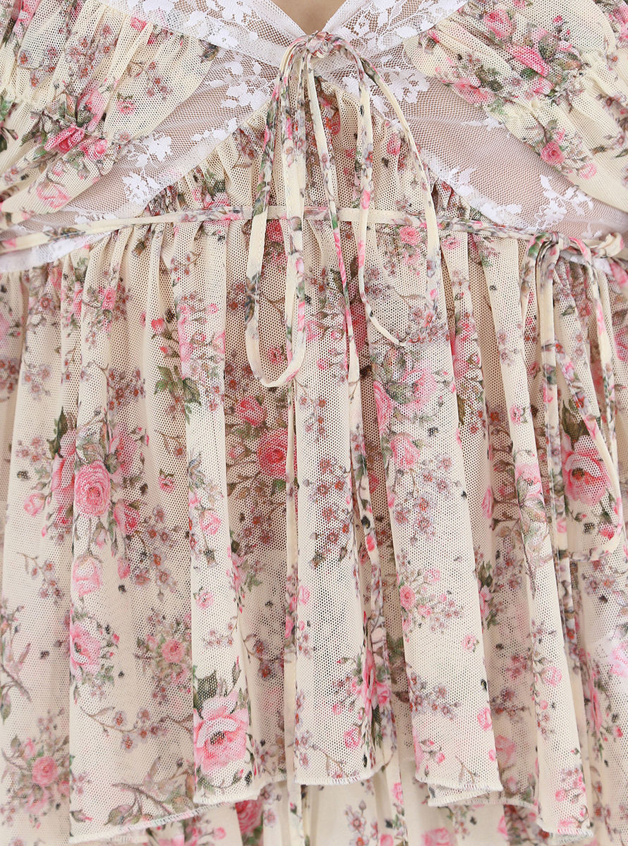 Top sottoveste Aniye By con maniche omerali arricciate. Inserti in pizzo fronte e retro a contrasto. Laccetti di chiusura in vita. La modella è alta 1,68 ed indossa la taglia 40.