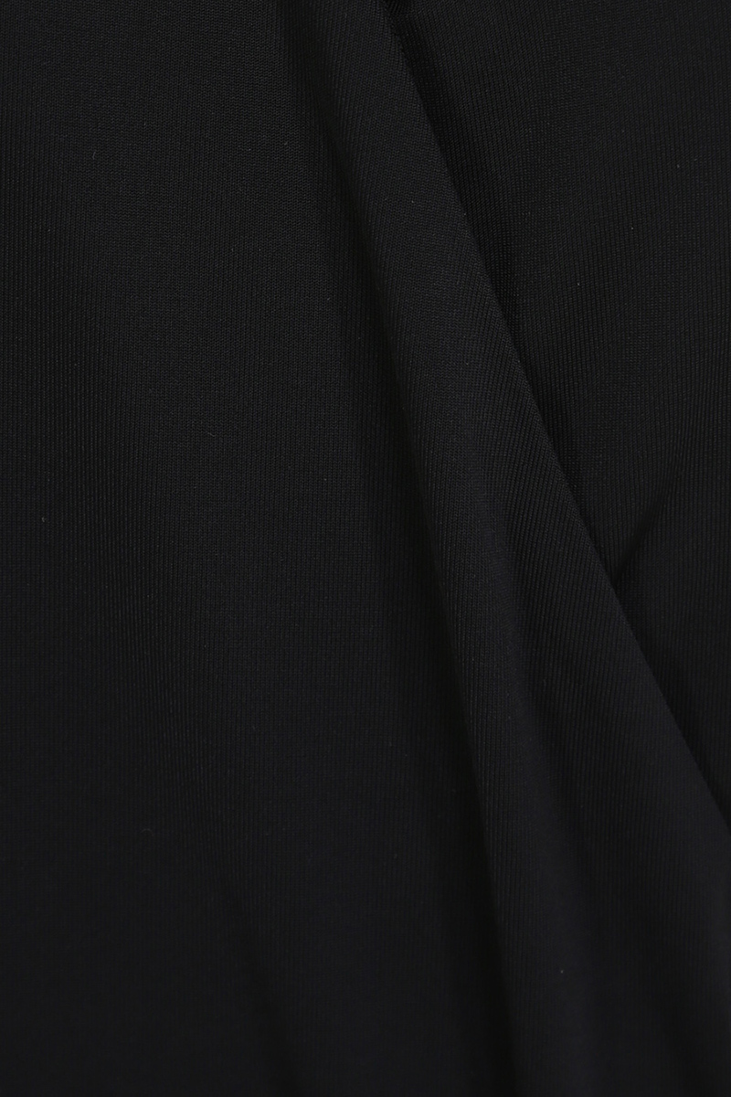 Body in jersey con collo all'americana incrociato. Schiena nuda con catena gold applicata. La modella è alta 1.68 ed indossa la taglia XS.