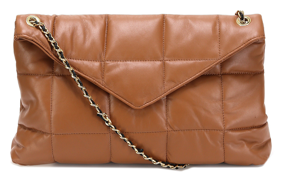 Borsa in pelle con bottone magnetico di chiusura. Tracolla inclusa. Misure 44 x 26 cm.