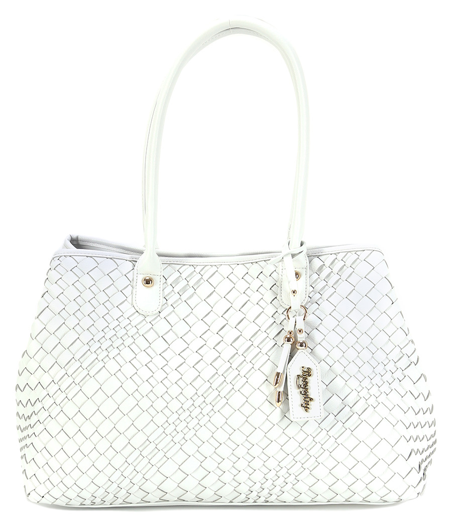 Borsa in pelle sintetica con bottone magnetico di chiusura. Misure 44 x 29 cm.