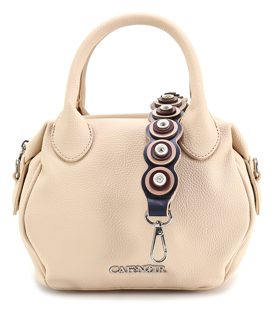 Borsa in eco pelle effetto martellato. Chiusura a zip e doppia tracolla inclusa. Misure 21 x 23 cm. Dettagli silver.