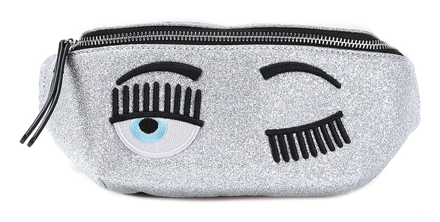 Borsa in tessuto con zip di chiusura. Glitter applicati. Misure 25 x 13 cm. Dettagli silver.