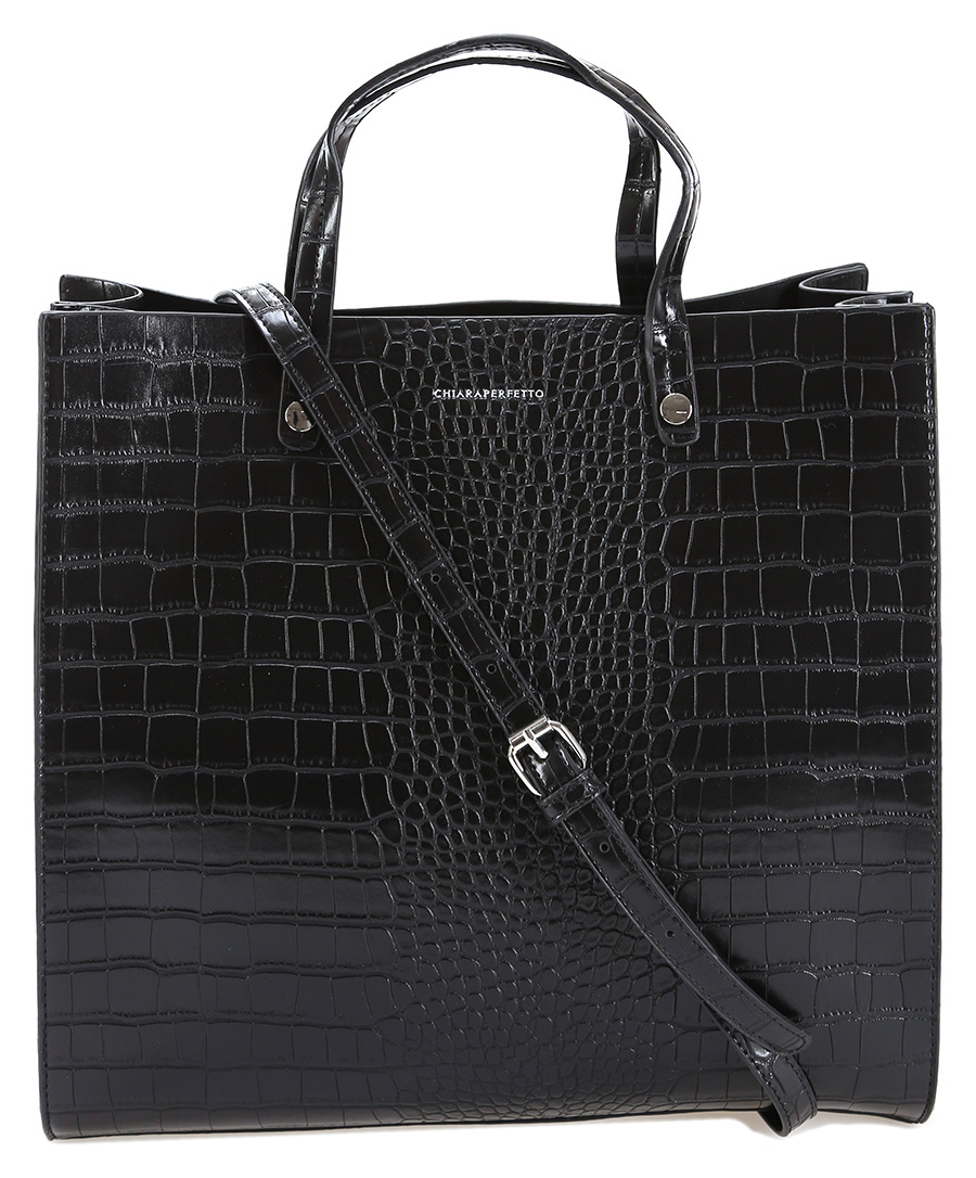 Borsa in eco pelle con bottone magnetico di chiusura. Tracolla inclusa. Misure 34 x 31 cm. Dettagli silver.