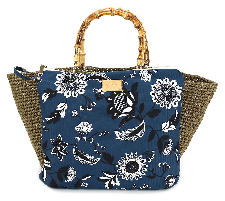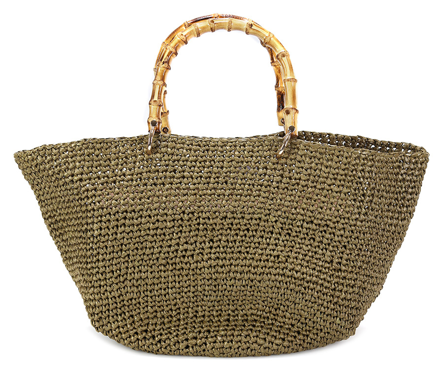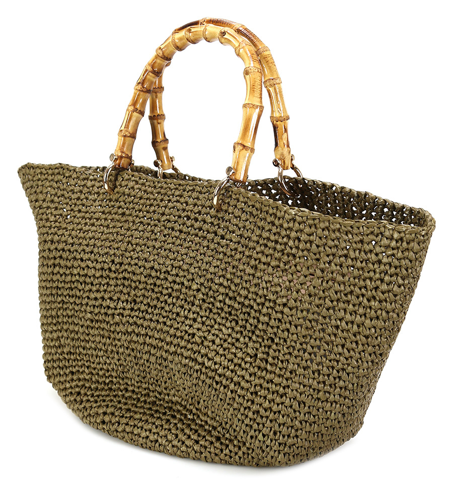 Borsa in rafia intrecciata. Pochette estraibile inclusa. Misure 51 x 28 cm.