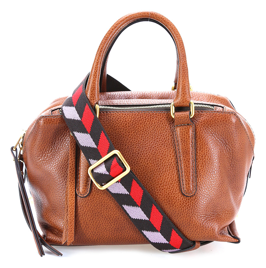 Borsa in pelle martellata con chiusura zip. Tracolla inclusa. Misure 26 x 17 cm. Dettagli gold.