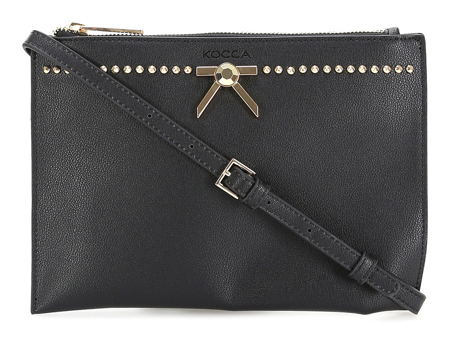 Borsa in pelle sintetica con chiusura zip. Tracolla inclusa. Misure 25 x 17 cm. Dettagli gold.