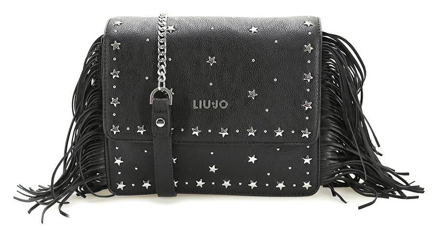 borsa in eco pelle effetto martellato, logo e decorazioni frontali. Chiusura con bottone magnetico. Tracolla inclusa. Misure 22 x 18 cm. Dettagli silver.