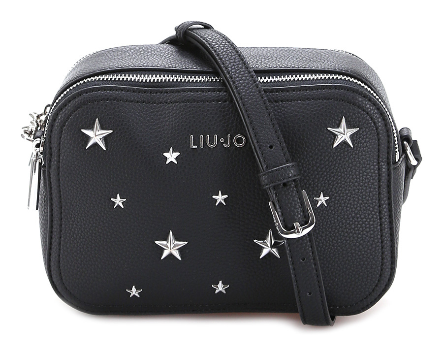 Borsa in eco pelle effetto martellato con chiusura zip. Decorazioni applicate. Tracolla inclusa. Misure 23 x 13 cm. Dettagli silver.