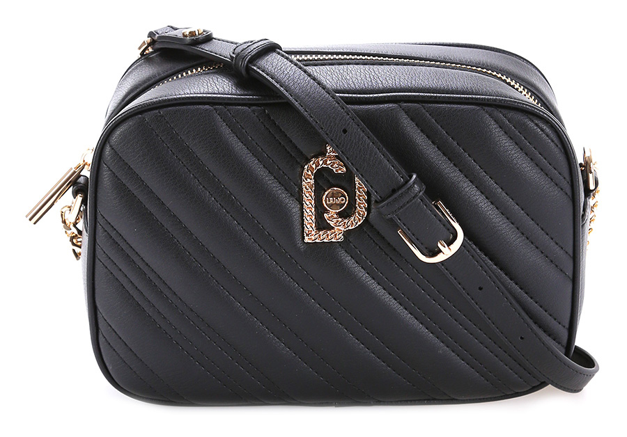 Borsa in eco pelle con chiusura zip. Logo frontale. Tracolla inclusa. Misure 24 x 16 cm. Dettagli gold.