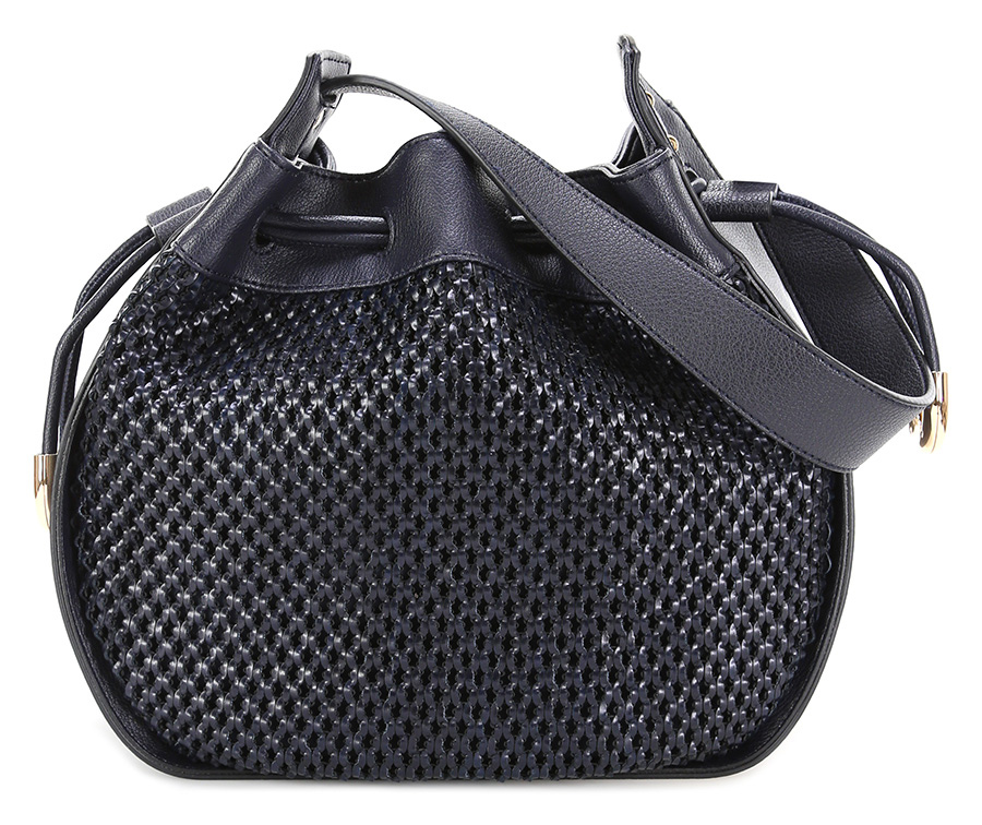 Borsa a secchiello in pelle sintetica. Tracolla inclusa. Misure 30 x 25 cm. Dettagli gold.