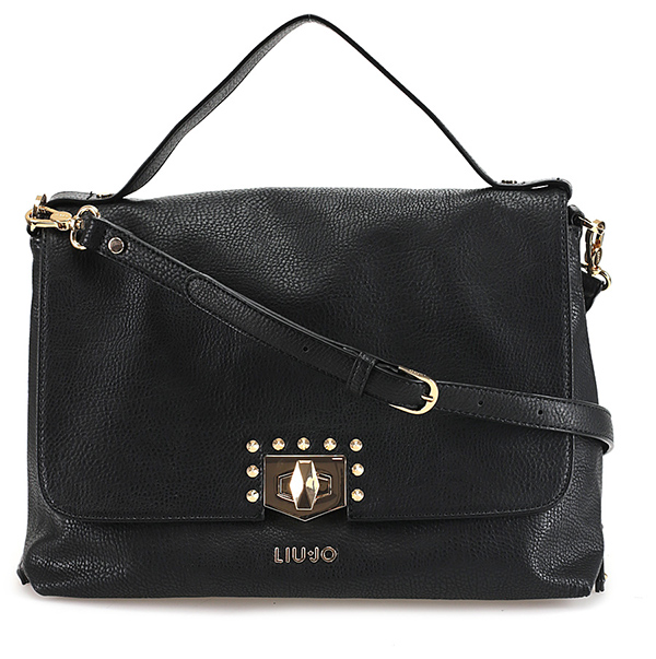 Borsa in eco pelle effetto martellato con pattella con chiusura a gancio girevole. Cerniere a zip laterali e tracolla regolabile inclusa. Misure 22x32 cm.