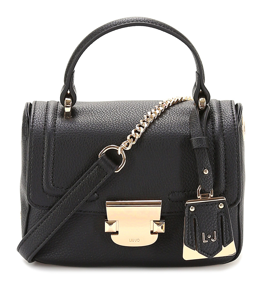 Borsa in eco pelle con chiusura a scatto. Tracolla a catena con dettaglio in eco pelle. Misure 19 x 14 cm. Dettagli gold.