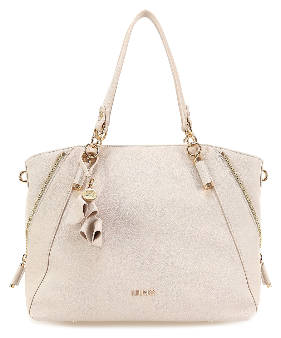 Borsa in eco pelle effetto martellato con chiusura a zip. Charms frontale con logo e zip di decoro sui lati. Misure 29 x 37 cm. Dettagli gold.