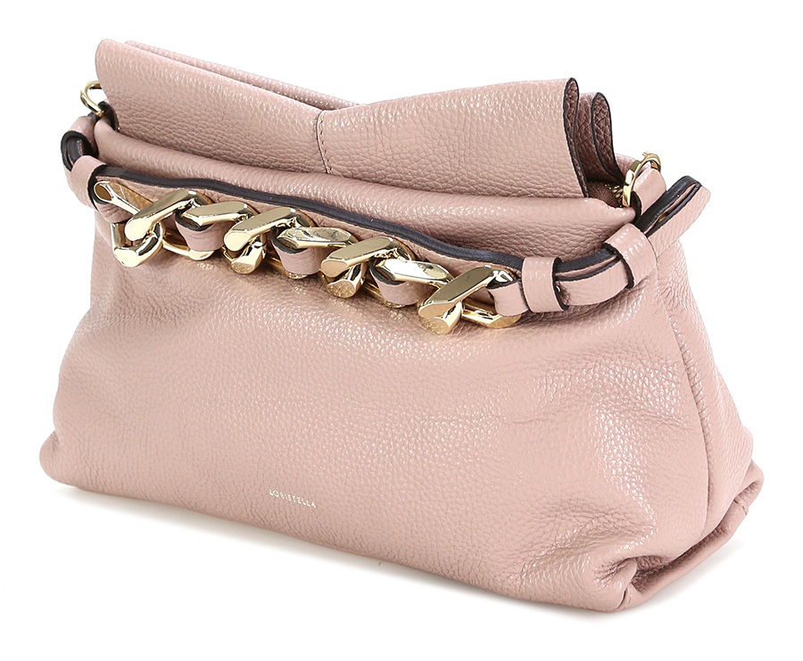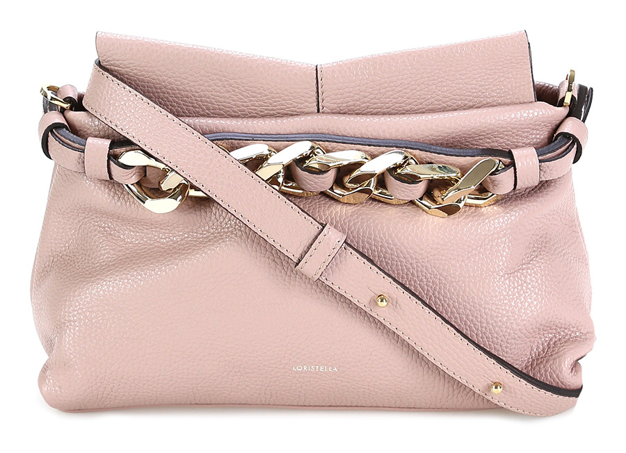 Borsa in pelle martellata con zip di chiusura. Tracolla inclusa. Misure 30 x 20 cm. Dettagli gold.