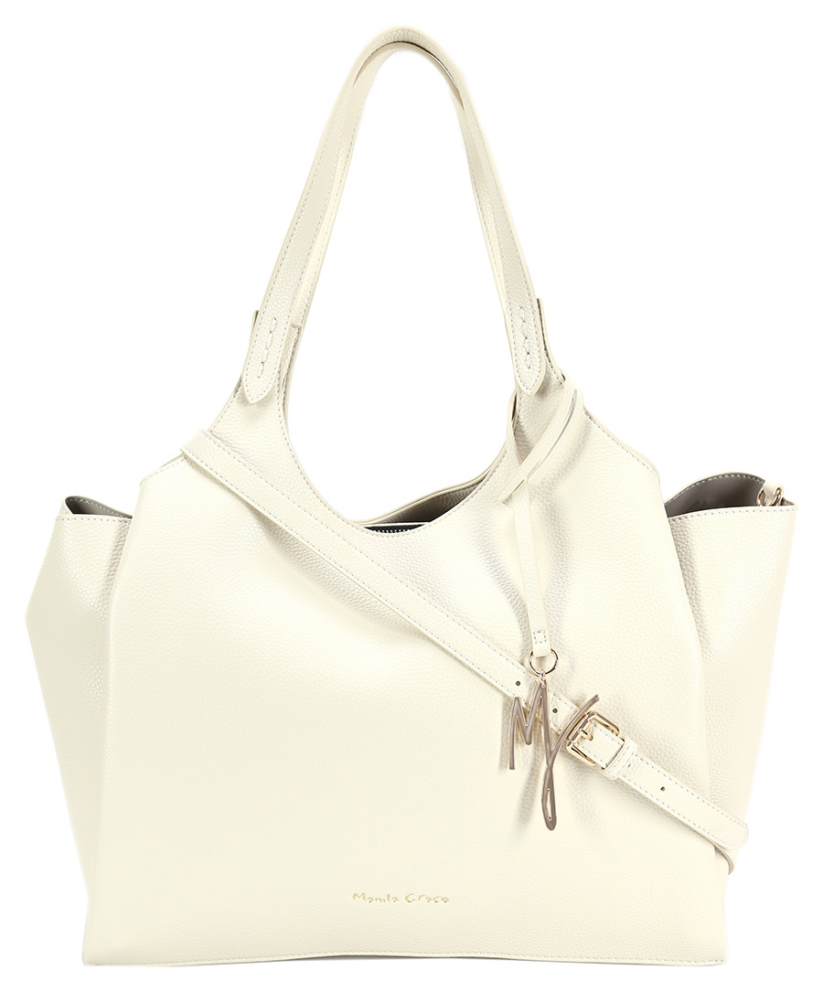 Borsa in pelle sintetica con zip di chiusura. Charm incluso. Tracolla inclusa. Misure 50 x 35 cm.