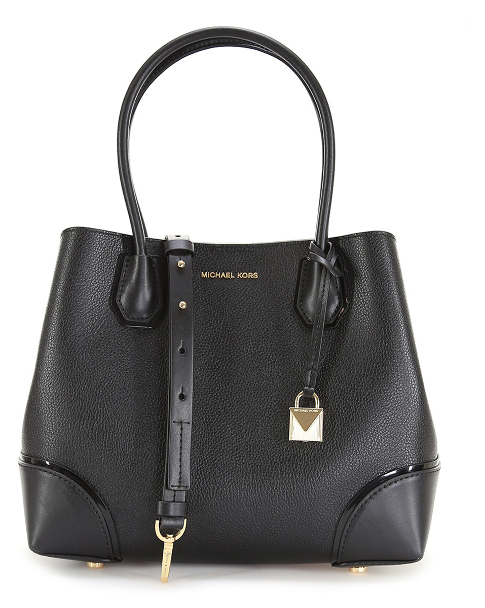 Borsa in pelle martellata con chiusura a bottone. Interno con tasca a zip. Lucchetto gold frontale, tracolla inclusa. Misure 27 x 32 cm. Dettagli gold.
