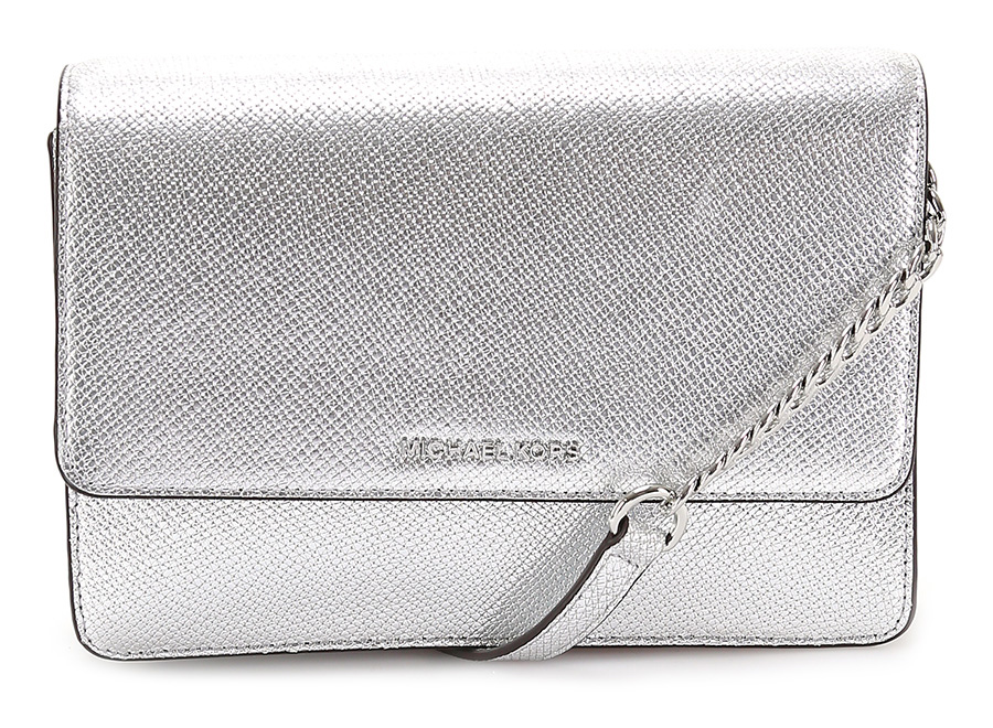Borsa in pelle effetto martellato con chiusura magnetica. Tracolla in pelle e metallo inclusa. Misure 18 x 24 cm. Dettagli silver.