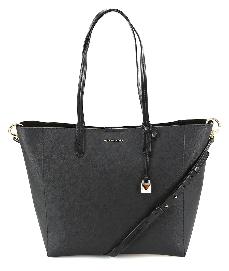 Borsa in pelle effetto saffiano con interno in tessuto, chiusura con bottone magnetico. Logo e lucchetto frontale, tracolla regolabile inclusa e busta in tessuto maculato interna. Tasca sul retro con bottoncino a clip di chiusura. Misure 33 x 31 cm.