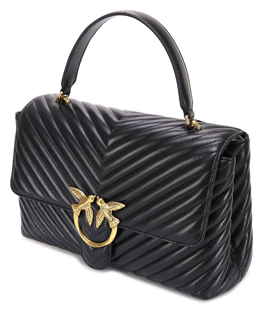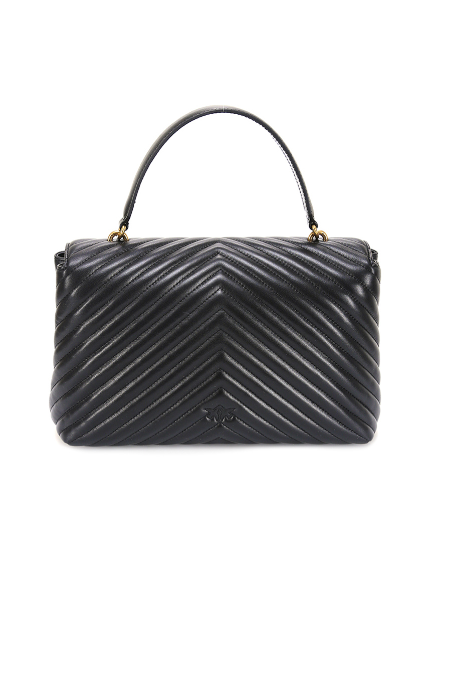 Borsa in pelle con chiusura ad incastro. Logo frontale applicato. Misure 35 x 19 cm.