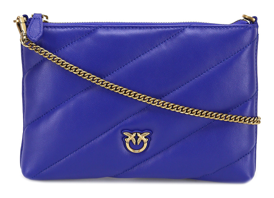 Borsa in pelle con zip di chiusura. Logo frontale. Tracolla in metallo inclusa. Misure 25 x 17 cm. Dettagli gold.