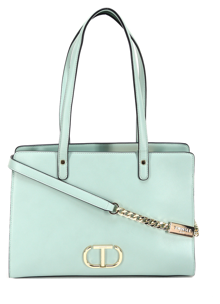 Borsa in pelle sintetica con zip di chiusura. Tracolla inclusa. Misure 34 x 23 cm.
