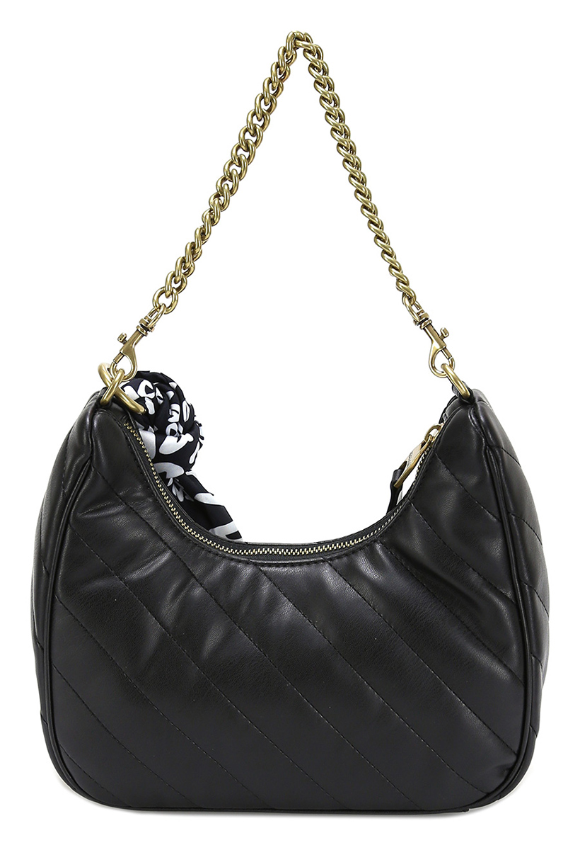 Borsa in pelle sintetica con zip di chiusura. Foulard incluso. Tracolla inclusa. Misure 29 x 22 cm.
