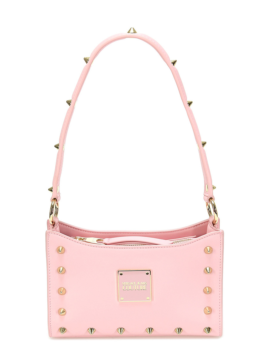 Borsa in pelle sintetica con zip di chiusura. Borchie applicate. Tracolla inclusa. 23 x 17 cm.